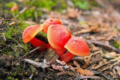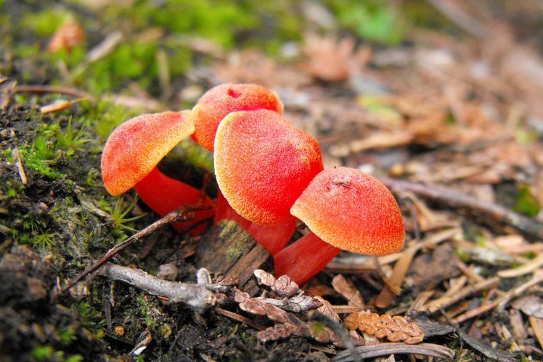 Keywords: mushrooms orange mushroom fungi forest floor nature toadstool colorful red wild