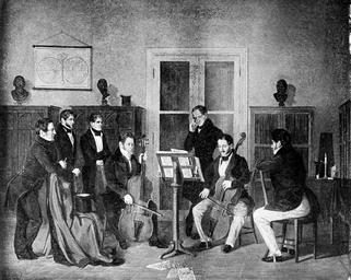 | Keywords: Musical Soiree – Baron Eskeles, Vienna, ca. 1830.jpg  Artwork Creator Nikolaus Moreau Musikalische Soirée bei Baron Denis Eskeles Musical soirée at Baron Denis Eskeles ~ 1830 Oil on canvas cm 38 49 Wien Museum Group portrait with Nikolaus Moreau Dr Herz violinist Josef Mayseder Baron Brentano Baron Arnstein Playing cello Josef Merk and Baron Eskeles https //archive org/details/katalogeinerwert00gilh Gilhofer Ranschburg Katalog einer wertvollen Sammlung Viennensia und Austriaca; Auktion Wien 1908 Denis von Eskeles Nikolaus Moreau Arnstein family Josef Mayseder Josef Merk Vienna in the 1830s Paintings in the Wien Museum PD-old-100 |