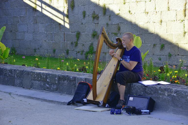 Keywords: musician music harp concert artist character man musical instrument free image street musician strings