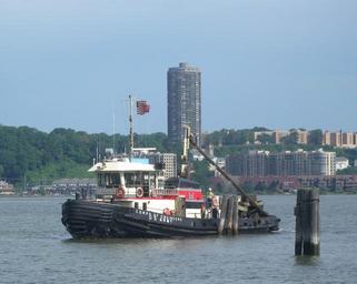 Keywords: MV Gelberman USACE Hudson with debris jeh.jpg en Looking north as Army boat uses crane to remove a floating timber on a cloudy morning 2011-07-13 own Jim henderson 40 77497 -73 9926 heading N cc-zero Uploaded with UploadWizard Hudson River Gelberman ship 1980 Marine debris |
