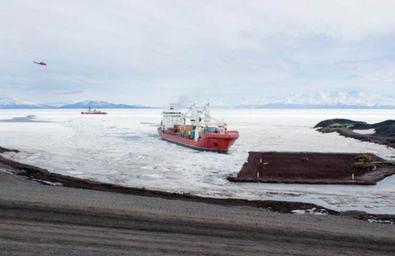 | Keywords: MV Ocean Giant at McMurdo Station ice pier in January 2015.JPG en The U S Military Sea-Lift Command chartered container ship MV Ocean Giant makes its approach to the ice pier at McMurdo Station prior to the start of port cargo handling evolutions in support of Operation Deep Freeze 2015 Deep Freeze is an annual U S Pacific Air Forces-led joint interagency mission to provide logistical and transportation support to the National Science Foundation and the U S Antarctic Program USAP Joint Task Force-Support Forces Antarctica coordinates strategic inter-theater airlift tactical deep field support aeromedical evacuation support search and rescue response sealift seaport access bulk fuel supply port cargo handling and transportation requirements for USAP 2015-01-25 150125-N-ZZ999-002 Navy http //www navy mil/view_image asp id 193793 U S Navy photo by SN Mumbali Ngwa PD-USGov-Military-Navy Operation Deep Freeze McMurdo Station Ships in Antarctica |