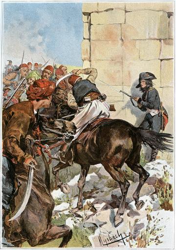 | Keywords: Myrbach 82 fp.jpg en Lieutenant Richemont shakes down an Albanian horseman during the battle of Nicopolis in October 1798 el Ο Richemont καταρρί των νεκρόν Αλβανόν ι έαν κατά την μάχη της ικο όλεως του Οκτωβρίου 1798 en Collection of Actia Nicopolis Foundation Preveza Greece el Αρχείο Ιδρύματος Ακτία ικό ολις Πρέβεζα 1894 Felician Myrbach 1853-1940 PD-old Battle of Nicopolis 1798 Works by Felicien de Myrbach-Rheinfeld 82a Views of Nicopolis of Epirus | ||||