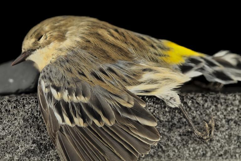 | Keywords: bird birds warbler warblers wood-warbler woodwarbler wood-warblers woodwarblers passerine animal animals animalia chordata aves passeriformes parulidae setophaga setophaga coronata setophagacoronata yellow-rumped warbler yellowrumpedwarbler yrwa butterbutt taxonomy:binomial=setophaga coronata taxonomy:binomial=setophagacoronata myrtle warbler myrtlewarbler setophaga coronata coronata setophagacoronatacoronata biml usgs droege stackshot building collision buildingcollision death hit window migrant migration night The eastern subspecies of the Yellow-rumped warbler, Setophaga coronata. This bird ran into a building at night while it was migrating and was picked up by the Lights out DC group. Canon Mark II 5D, Zerene Stacker, Stackshot Sled, 65mm Canon MP-E 1-5X macro lens, Twin Macro Flash in Styrofoam Cooler, F5.0, ISO 100, Shutter Speed 200, link to a .pdf of our set up is located in our profile The eastern subspecies of the Yellow-rumped warbler, Setophaga coronata. This bird ran into a building at night while it was migrating and was picked up by the Lights out DC group. Canon Mark II 5D, Zerene Stacker, Stackshot Sled, 65mm Canon MP-E 1-5X macro lens, Twin Macro Flash in Styrofoam Cooler, F5.0, ISO 100, Shutter Speed 200, link to a .pdf of our set up is located in our profile |