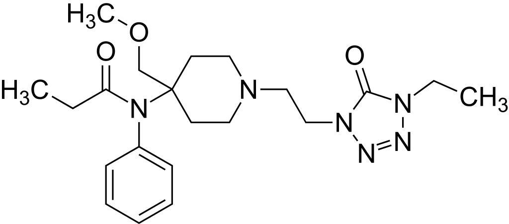 | Keywords: N-(1-(2-(4-ethyl-5-oxo-4,5-dihydro-1H-tetrazol-1-yl)ethyl)-4-(methoxymethyl)piperidin-4-yl)-N-phenylpropionamide.svg Structure of N- 1- 2- 4-ethyl-5-oxo-4 5-dihydro-1H-tetrazol-1-yl ethyl -4- methoxymethyl piperidin-4-yl -N-phenylpropionamide Own 2014-02-20 Emeldir <span class signature-talk >talk</span> PD-chem Propionamides Opioids Anesthetics | ||||