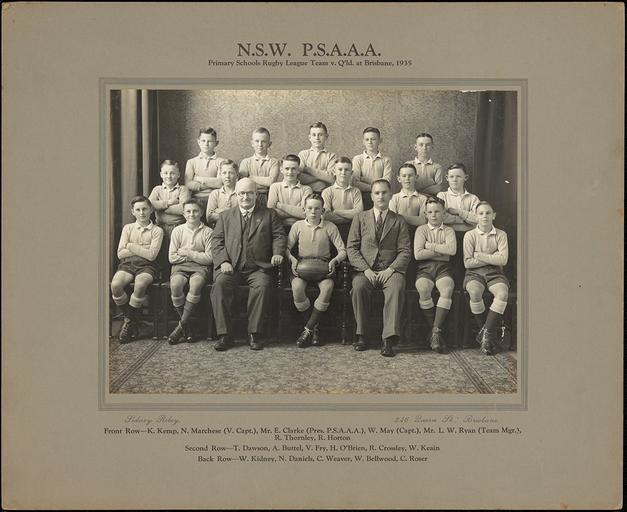 | Keywords: archives state records nsw staterecordsnsw newsouthwales blackandwhite sport rugby football school monochrome black and white Title: N.S.W P.S.A.A.A Primary Schools Rugby Leauge Team v Q'ld [Queensland] at Brisbane 1935 Dated: by 31/12/1935 Digital ID: NRS15051_Rugby003 Rights: No known copyright restrictions www.records.nsw.gov.au/about-us/rights-and-permissions We'd love to hear from you if you use our photos/documents. Many other photos in our collection are available to view and browse on our website using Photo Investigator. Title: N.S.W P.S.A.A.A Primary Schools Rugby Leauge Team v Q'ld [Queensland] at Brisbane 1935 Dated: by 31/12/1935 Digital ID: NRS15051_Rugby003 Rights: No known copyright restrictions www.records.nsw.gov.au/about-us/rights-and-permissions We'd love to hear from you if you use our photos/documents. Many other photos in our collection are available to view and browse on our website using Photo Investigator. |