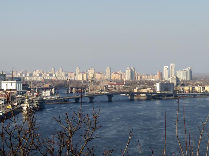 Keywords: Kiev island Naberezhno-Khreshchatytska street Gavan bridge Rybalsky cable-stayed