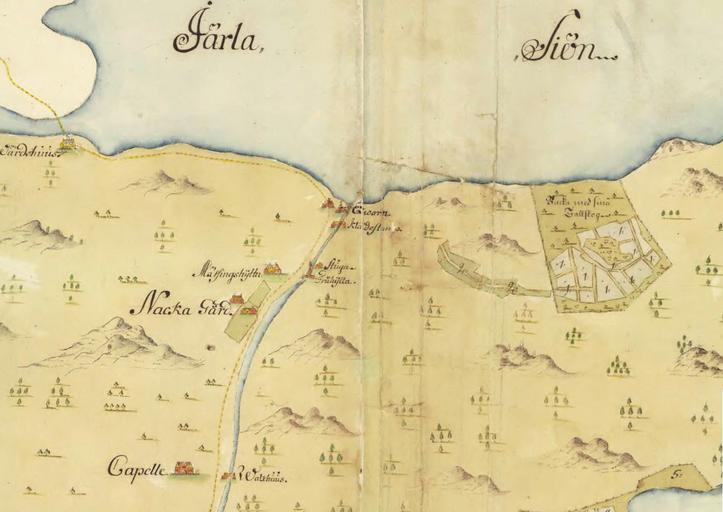 Keywords: Nacka gård 1698.jpg sv Del av kartan som visar Nacka gård och mässingshyttan http //historiskakartor lantmateriet se/arken/s/show html showmap true archive LMS nbOfImages 2 sd_base lms2 sd_ktun 4c4d535f4136372d32323a32 Lantmäteriet Lars Kietzlingh 1698 Nacka gård PD-old-100 |