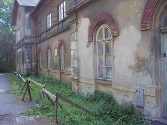 Keywords: Nádraží Zahrádky 8.JPG cs Už zašlé omítky nádraží v Zahrádkách od silnice own Zákupák 2013-07-07 Zahrádky u České Lípy train station