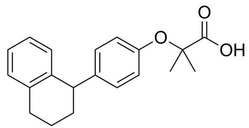 Keywords: Nafenopin.svg Chemical structure of nafenopin Own 18 56 13 January 2011 UTC Ed Edgar181 Hypolipidemic agents Carboxylic acids Phenol ethers Tetralins
