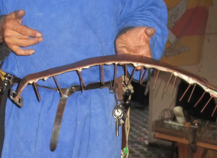 Keywords: Nagelguertel mittelalterliches Folterinstrument IMG 4907-4.jpg de Nagelgürtel - Mittelalterliches Folterinstrument own AtelierMonpli 2012-09-15 Torture instruments Human hands holding objects Leather belts cc-by-3 0 careware Atelier Monpli oder Careware-Lizenz Spende an BabyklappeSingen http //www widmann-kids de/presse/-2012/116-scharfrichter-helfen-kindern-suedkurier-18022012 html |