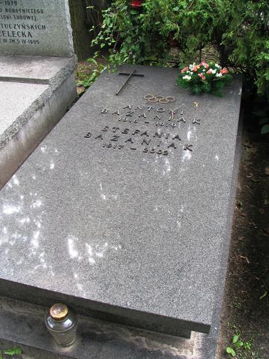 Keywords: Nagrobek antoni bazaniak.JPG pl Grób Antoniego Bazaniaka i jego żony Stefanii own GrzegorzPetka 2008-07-23 Graves in Poland Bażaniak Warsaw Military Cemetery - B Bazaniak Antoni Antoni Bazaniak