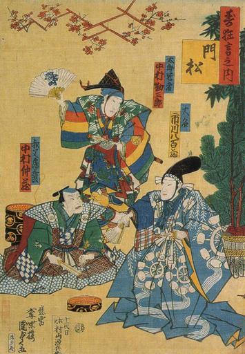 Keywords: Nakamura Nakazo III, Nakamura Kanzaburo XIII and Ichikawa Yaozo VI (1865).jpg en Kabuki actors Nakamura Nakazo III Nakamura Kanzaburo XIII and Ichikawa Yaozo VI left to right in the dance Kadomatsu staged in September 1865 at the Nakamuraza ukiyo-e by Utagawa Kunisada II same year ru Актё ы кабуки акаму а акадзо III акаму а Кандзабу о XIII и Итикава Яодзо VI в пьесе-танце Kadomatsu поставленном в теат е акаму адза в 1865 году укиё-э Утагавы Кунисады II 1865 год 1865 http //kabuki21 com/nakazo3_kanzaburo13_yaozo6_gf php Creator Utagawa Kunisada II PD-old-100 Uploaded with UploadWizard Ukiyo-e of kabuki actors Chinese dancers in art |