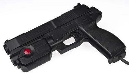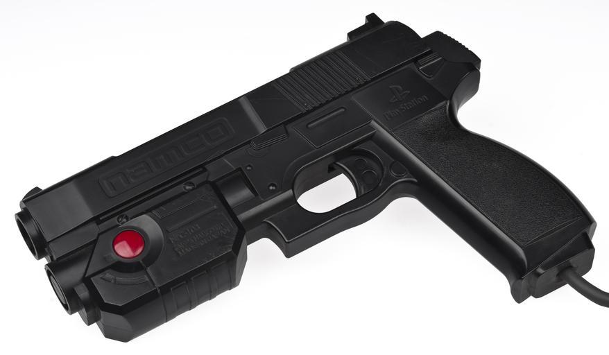 Keywords: Namco-GunCon-PS1.jpg en A black Namco GunCon controller for the original PlayStation console own Evan-Amos 2011-08-02 User Evan-Amos/EABanner User Evan-Amos/A700 Electronic devices on white background GunCon