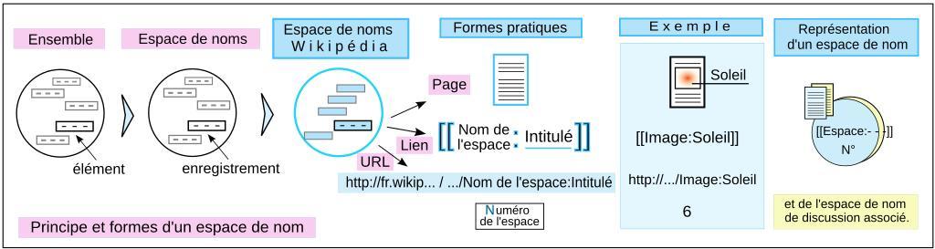 Keywords: Namespace - creation.svg Principe et formes des espaces de noms de Wikipédia fr par Hervé Tigier le 18 février 2006 destiné aux pages d'aide Wikipedia diagrams SVG diagrams