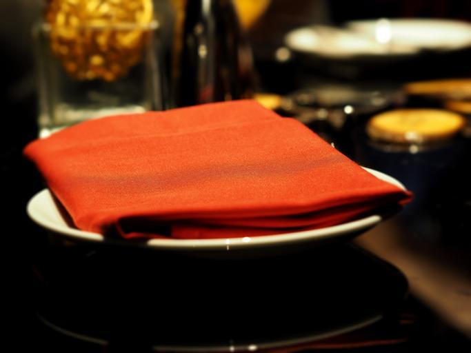 Keywords: napkins handkerchief hand towel red dining accessories on the dining table clean cleaning