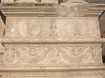 Keywords: NapoliMaschioAngioinoArcoLaurana7.jpg Italia Campania Napoli Castel Nuovo Maschio Angioino arco trionfale di ingresso passaggio basamenti della decorazione interna Own 2007-07 MM Castel Nuovo Naples - Triumphal arch Garlands Reliefs of putti in Naples Castel Sculptures of vases |