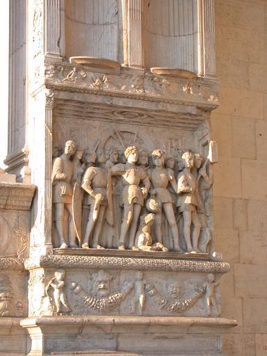 Keywords: NapoliMaschioAngioinoArcoLaurana8.jpg Italia Campania Napoli Castel Nuovo Maschio Angioino arco trionfale di ingresso passaggio rilievo con Alfonso tra congiunti e ufficiali Own 2007-07 MM Castel Nuovo Naples - Triumphal arch Garlands Castello Alphonse V of Aragon Castello People wearing armour Naples Armour in art Naples Mascarons in Naples Castello |