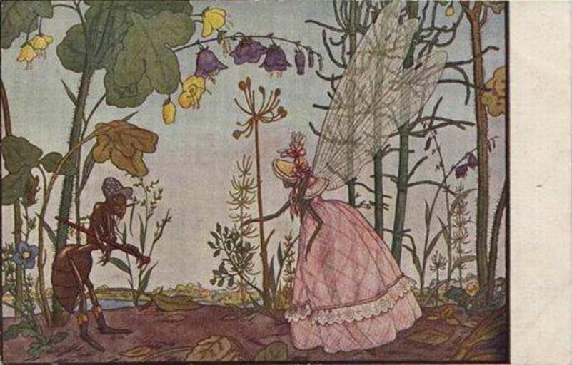 View Original:narbut_illustration_ivan_krylov_s_fable_ant_dragonfly_1912.jpg (541x346)