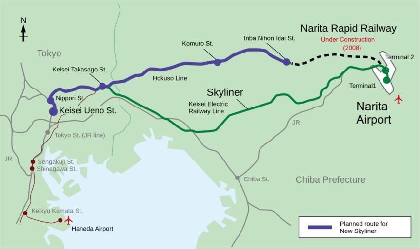 Keywords: Narita New Rapid Line plan.svg The route of the Narita New Rapid; aka New Skyliner Own 2008-04-10 Brionies The route image in SVG file information referred http //www new-skyliner jp/ Public transport maps of Tokyo Keisei Electric Railway