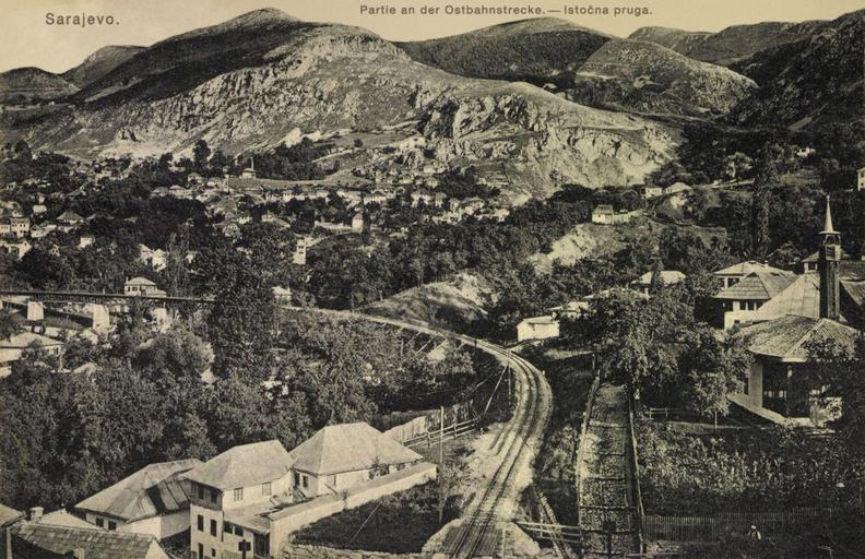 | Keywords: Narrow-Gauge-Railway Ostbahn Viaduct-Bistrik.jpg en Narrow-gauge railway viaduct Bistrik Old postcard Simon Kattan Sarajevo 1911 43 51 13 N 18 25 39 E heading SSE PD-old-70-1923 Bosnian Eastern railway Postcards of Sarajevo Sarajevo in the 1910s Rail transport in Bosnia and Herzegovina in the 1910s |