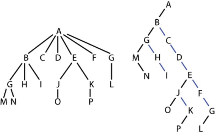 Keywords: Nary to binary tree conversion.png math An example of n-ary to binary tree conversion made by Derrick Coetzee in Illustrator for the article binary tree based strongly on the ASCII diagram previously in that article Un exemple de conversion d'un arbre quelconque en un arbre binaire Transfered from en wikipedia was en Image Nary_to_binary_tree_conversion png to fr wikipedia Derrick Coetzee User Dcoetzee Dcoetzee original upload log wikitable border 1 style width 100 ; margine 0 auto; - Date/Time Dimensions User Comment - 01 21 25 April 2004 400×250 14 989 bytes DIG Talk contribs block Reverted to earlier revision - 01 21 25 April 2004 400×250 14 989 bytes DIG Talk contribs block Reverted to earlier revision - 01 21 25 April 2004 400×250 15 210 bytes DIG Talk contribs block Reverted to earlier revision - 19 26 10 March 2004 400×250 15 210 bytes Jeronim Talk contribs block Reverted to earlier revision - 19 20 2 February 2004 400×250 14 989 bytes Carpathia Talk contribs block Reverted to earlier revision - 02 39 21 November 2003 400×250 15 210 bytes Deco Talk contribs block Fixed a black edge that should be blue - 02 21 21 November 2003 400×250 14 989 bytes Deco Talk contribs block An example of nary to binary tree conversion Tree diagrams Uploads by Dcoetzee ImageNote 1 201 96 21 28 400 250 2 le nœud G est une doublette ImageNoteEnd 1