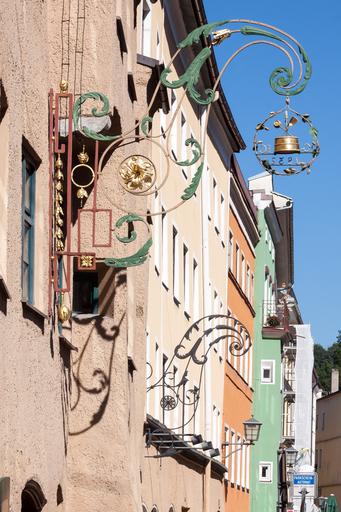 Keywords: nasal shield advertising advertising sign hauswand restaurant guild characters brewing guild symbols blacksmithing sideboard shield golden green facades homes wasserburg