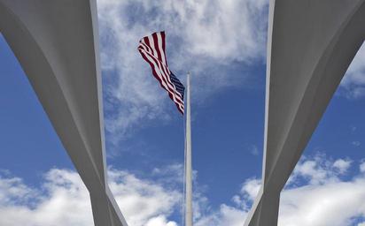 Keywords: National Park Service sunset tour 140526-N-RI884-047.jpg en The national ensign flies above the USS Arizona Memorial In honor of Memorial Day visitors to the World War II Valor in the Pacific National Monument participated in the National Park Service sunset tour to the memorial A Pacific Fleet Band bugler performed evening Taps and Joint Base Pearl Harbor-Hickam Honors and Ceremonies flag detail performed evening colors U S Navy photo by Mass Communication Specialist 1st Class Daniel Barker/Released Unit Defense Imagery Management Operations Center DVIDS Tags ensign; Memorial Day; DIMOC; flag; Arizona Memorial; DVIDS Bulk Import; World War II Valor in the Pacific National Monument 2014-05-27 Petty Officer 1st Class Daniel Barker https //www dvidshub net/image/1381800/national-park-service-sunset-tour 140526-N-RI884-047 2014-06-06 01 21 PEARL HARBOR HI US PD-USGov-Military-Navy USS Arizona Memorial interior Pacific Fleet Band USS Arizona Memorial Images from DoD uploaded by Fæ |