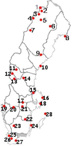 | Keywords: National parks of Sweden numbers.png Made my me Original source is http //www internat naturvardsverket se/documents/nature/engpark/natpbild/karta2 gif No names on it only numbers here are names 1 Vadvetjåkka 2 Abisko 3 Stora Sjöfallet 4 Padjelanta 5 Sarek 6 Muddus 7 Pieljekaise 8 Haparanda Skärgård 9 Björnlandet 10 Skuleskogen 11 Sånfjället 12 Töfsingdalen 13 Fulufjället 14 Hamra 15 Färnebofjärden 16 Ängsö 17 Garphyddan 18 Tyresta 19 Tresticklan 20 Djurö 21 Tiveden 22 Norra Kvill 23 Store Mosse 24 Blå Jungfrun 25 Söderåsen 26 Dalby Söderskog 27 Stenshuvud 28 Gotska Sandön Borders are of provinces See Image Fred-Chess - Landskap Sweden text-color png for province names National parks of Sweden Maps of Sweden Maps of protected areas |