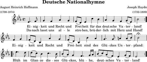 Keywords: Nationalhymne der Bundesrepublik Deutschland.svg de Nationalhymne der Bundesrepublik Deutschland Deutsche Nationalhymne 2011-09-14 selbst erstellt nach http //www bundesregierung de/nn_774/Content/DE/StatischeSeiten/Breg/die-nationalhymne-der-bundesrepublik-deutschland html August Heinrich Hoffmann Text Joseph Haydn Musik PD-old-100 Uploaded with UploadWizard Das Lied der Deutschen Sheet music of Joseph Haydn National anthem sheets