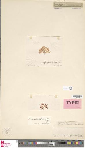 | Keywords: Naturalis Biodiversity Center - L.4075025 - Plocamium glomeratum J.Agardh - Rhodophyceae - Plant type specimen.jpeg artwork Dimensions artwork Document type Rhodophyceae Plocamium Papenfuss GF Individual count Infraspecific epithet Infraspecific rank Institution Naturalis Kind of unit artwork Kind of unit specimen Life stage Cap Agulhas Lat -34 83 S Long 20 E Medium artwork Nomenclatural code Occurrence ID page Other fields Other versions artwork Permission license Naturalis donation CC0 Publication location Scientific name Plocamium subfastigiatum Kütz type of - Plocamium glomeratum J Agardh species Scientific name authorship J Agardh Source url http //bioportal naturalis nl Specific epithet glomeratum State or province Western Cape Cape Agulhas Subject keywords artwork Subject keywords publication Title artwork Title publication Type status type 0-4-1958 dmy Uploaded with GWToolset Naturalis_Biodiversity_Center_-_L 4075025_-_Plocamium_glomeratum_J Agardh_-_Rhodophyceae_-_Plant_type_specimen http //medialib naturalis nl/file/id/L 4075025/format/large Media donated by Naturalis Biodiversity Center Plant type specimens at Naturalis Biodiversity Center Plocamium glomeratum |