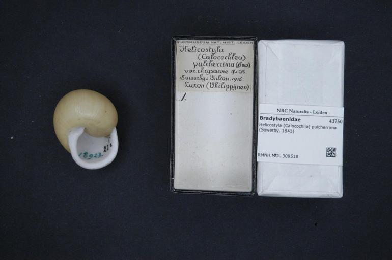 | Keywords: Naturalis Biodiversity Center - RMNH.MOL.309518 - Helicostyla (Calocochlia) pulcherrima (Sowerby, 1841) - Bradybaenidae - Mollusc shell.jpeg artwork Dimensions artwork Document type Bradybaenidae Helicostyla Individual count Infraspecific epithet Infraspecific rank Institution Naturalis Kind of unit artwork Kind of unit specimen shell Life stage Medium artwork Nomenclatural code Source institute Rijksmuseum van Natuurlijke Historie Leiden Scale the width of the text on the species/QR-code label is 38 mm Occurrence ID page Other fields Other versions artwork Permission license Naturalis donation CC-0 Mollusca Publication location Scientific name Helicostyla Calocochlia pulcherrima Sowerby 1841 Scientific name authorship Sowerby 1841 Source url http //bioportal naturalis nl Specific epithet pulcherrima State or province Subject keywords artwork Subject keywords publication Title artwork Title publication Type status Uploaded with GWToolset Naturalis_Biodiversity_Center_-_RMNH MOL 309518_-_Helicostyla_ Calocochlia _pulcherrima_ Sowerby _1841 _-_Bradybaenidae_-_Mollusc_shell http //medialib naturalis nl/file/id/RMNH MOL 309518/format/large Media donated by Naturalis Biodiversity Center Molluscs at Naturalis from the Rijksmuseum van Natuurlijke Historie Helicostyla pulcherrima Helicostyla |