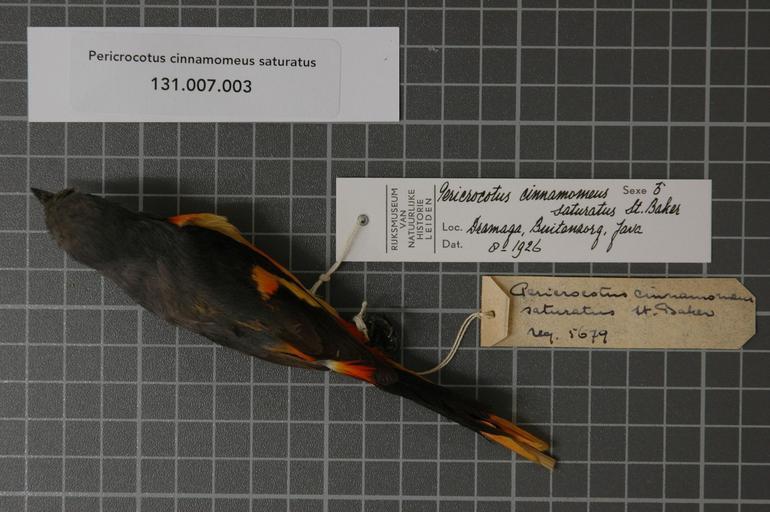 | Keywords: Naturalis Biodiversity Center - RMNH.AVES.124199 1 - Pericrocotus cinnamomeus saturatus Stuart Baker, 1920 - Campephagidae - bird skin specimen.jpeg artwork Dimensions artwork Document type Campephagidae Pericrocotus Individual count 1 Infraspecific epithet saturatus Infraspecific rank Institution Naturalis Kind of unit artwork Kind of unit specimen skin Life stage Indonesia Java Dramaga Buitenzorg Medium artwork Nomenclatural code Occurrence ID page Other fields Other versions artwork Permission license Naturalis donation CC-0 Publication location Scientific name Pericrocotus cinnamomeus saturatus Stuart Baker 1920 Scientific name authorship Stuart Baker 1920 male Source url http //bioportal naturalis nl Specific epithet cinnamomeus State or province Subject keywords artwork Subject keywords publication Title artwork Title publication Type status Uploaded with GWToolset Naturalis_Biodiversity_Center_-_RMNH AVES 124199_1_-_Pericrocotus_cinnamomeus_saturatus_Stuart_Baker _1920_-_Campephagidae_-_bird_skin_specimen http //medialib naturalis nl/file/id/RMNH AVES 124199_1/format/large Media donated by Naturalis Biodiversity Center Songbird specimens at Naturalis Biodiversity Center Pericrocotus cinnamomeus museum specimens |