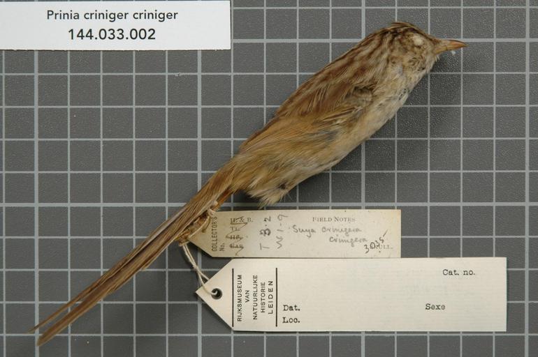 | Keywords: Naturalis Biodiversity Center - RMNH.AVES.137200 1 - Prinia criniger criniger (Hodgson, 1836) - Sylviidae - bird skin specimen.jpeg artwork Dimensions artwork Document type Sylviidae Prinia Individual count 1 Infraspecific epithet criniger Infraspecific rank Institution Naturalis Kind of unit artwork Kind of unit specimen skin Life stage Kashmir Domel Medium artwork Nomenclatural code Sex remark On field label Occurrence ID page Other fields Other versions artwork Permission license Naturalis donation CC-0 Publication location Scientific name Prinia criniger criniger Hodgson 1836 Scientific name authorship Hodgson 1836 Source url http //bioportal naturalis nl Specific epithet criniger State or province Kashmir Subject keywords artwork Subject keywords publication Title artwork Title publication Type status Uploaded with GWToolset Naturalis_Biodiversity_Center_-_RMNH AVES 137200_1_-_Prinia_criniger_criniger_ Hodgson _1836 _-_Sylviidae_-_bird_skin_specimen http //medialib naturalis nl/file/id/RMNH AVES 137200_1/format/large Media donated by Naturalis Biodiversity Center Songbird specimens at Naturalis Biodiversity Center Prinia crinigera Prinia |