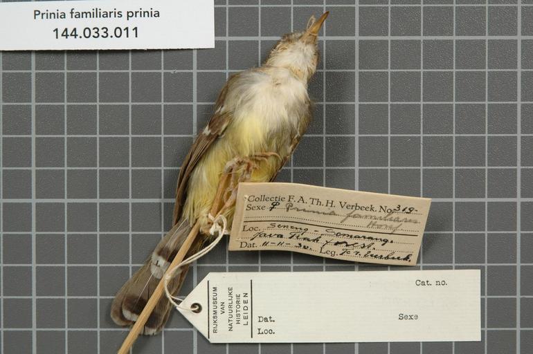 | Keywords: Naturalis Biodiversity Center - RMNH.AVES.137362 1 - Prinia familiaris prinia (Temminck, 1822) - Sylviidae - bird skin specimen.jpeg artwork Dimensions artwork Document type Sylviidae Prinia Individual count 1 Infraspecific epithet prinia Infraspecific rank Institution Naturalis Kind of unit artwork Kind of unit specimen skin Life stage Indonesia Java Semarang Senang Medium artwork Nomenclatural code Occurrence ID page Other fields Other versions artwork Permission license Naturalis donation CC-0 Publication location Scientific name Prinia familiaris prinia Temminck 1822 Scientific name authorship Temminck 1822 female Source url http //bioportal naturalis nl Specific epithet familiaris State or province Java Semarang Subject keywords artwork Subject keywords publication Title artwork Title publication Type status Uploaded with GWToolset Naturalis_Biodiversity_Center_-_RMNH AVES 137362_1_-_Prinia_familiaris_prinia_ Temminck _1822 _-_Sylviidae_-_bird_skin_specimen http //medialib naturalis nl/file/id/RMNH AVES 137362_1/format/large Media donated by Naturalis Biodiversity Center Songbird specimens at Naturalis Biodiversity Center Prinia familiaris Prinia |