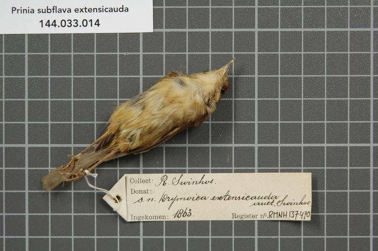 | Keywords: Naturalis Biodiversity Center - RMNH.AVES.137470 2 - Prinia subflava extensicauda (Swinhoe, 1860) - Sylviidae - bird skin specimen.jpeg artwork Dimensions artwork Document type Sylviidae Prinia Individual count 1 Infraspecific epithet extensicauda Infraspecific rank Institution Naturalis Kind of unit artwork Kind of unit specimen skin Life stage Formosa Medium artwork Nomenclatural code Additional identification info auct Swinhoe Occurrence ID page Other fields Other versions artwork Permission license Naturalis donation CC-0 Publication location Scientific name Prinia subflava extensicauda Swinhoe 1860 Scientific name authorship Swinhoe 1860 Source url http //bioportal naturalis nl Specific epithet subflava State or province Subject keywords artwork Subject keywords publication Title artwork Title publication Type status Uploaded with GWToolset Naturalis_Biodiversity_Center_-_RMNH AVES 137470_2_-_Prinia_subflava_extensicauda_ Swinhoe _1860 _-_Sylviidae_-_bird_skin_specimen http //medialib naturalis nl/file/id/RMNH AVES 137470_2/format/large Media donated by Naturalis Biodiversity Center Songbird specimens at Naturalis Biodiversity Center Prinia subflava Prinia |