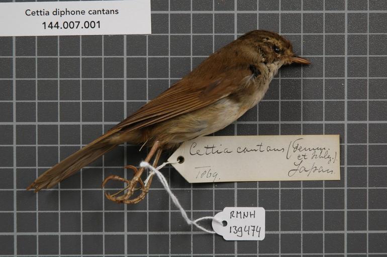 | Keywords: Naturalis Biodiversity Center - RMNH.AVES.139474 1 - Cettia diphone cantans (Temminck and Schlegel, 1847) - Sylviidae - bird skin specimen.jpeg artwork Dimensions artwork Document type Sylviidae Cettia Individual count 1 Infraspecific epithet cantans Infraspecific rank Institution Naturalis Kind of unit artwork Kind of unit specimen skin Life stage Japan Medium artwork Nomenclatural code Occurrence ID page Other fields Other versions artwork Permission license Naturalis donation CC-0 Publication location Scientific name Cettia diphone cantans Temminck and Schlegel 1847 Scientific name authorship Temminck and Schlegel 1847 Source url http //bioportal naturalis nl Specific epithet diphone State or province Subject keywords artwork Subject keywords publication Title artwork Title publication Type status Uploaded with GWToolset Naturalis_Biodiversity_Center_-_RMNH AVES 139474_1_-_Cettia_diphone_cantans_ Temminck_and_Schlegel _1847 _-_Sylviidae_-_bird_skin_specimen http //medialib naturalis nl/file/id/RMNH AVES 139474_1/format/large Media donated by Naturalis Biodiversity Center Songbird specimens at Naturalis Biodiversity Center Horornis diphone Cettia |