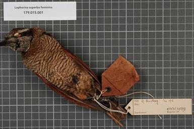 | Keywords: Naturalis Biodiversity Center - RMNH.AVES.140797 2 - Lophorina superba feminina Grant, 1915 - Paradisaeidae - bird skin specimen.jpeg artwork Dimensions artwork Document type Paradisaeidae Lophorina Individual count 1 Infraspecific epithet feminina Infraspecific rank Institution Naturalis Kind of unit artwork Kind of unit specimen skin Life stage Perameles-bivak Medium artwork Nomenclatural code Sex remark On RMNH-label first female changed into male Occurrence ID page Other fields Other versions artwork Permission license Naturalis donation CC-0 Publication location Scientific name Lophorina superba feminina Grant 1915 Scientific name authorship Grant 1915 male Source url http //bioportal naturalis nl Specific epithet superba State or province Subject keywords artwork Subject keywords publication Title artwork Title publication Type status Uploaded with GWToolset Naturalis_Biodiversity_Center_-_RMNH AVES 140797_2_-_Lophorina_superba_feminina_Grant _1915_-_Paradisaeidae_-_bird_skin_specimen http //medialib naturalis nl/file/id/RMNH AVES 140797_2/format/large Media donated by Naturalis Biodiversity Center Songbird specimens at Naturalis Biodiversity Center Lophorina superba Lophorina |