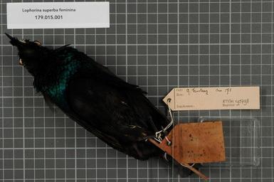 | Keywords: Naturalis Biodiversity Center - RMNH.AVES.140798 2 - Lophorina superba feminina Grant, 1915 - Paradisaeidae - bird skin specimen.jpeg artwork Dimensions artwork Document type Paradisaeidae Lophorina Individual count 1 Infraspecific epithet feminina Infraspecific rank Institution Naturalis Kind of unit artwork Kind of unit specimen skin Life stage Perameles-bivak Medium artwork Nomenclatural code Occurrence ID page Other fields Other versions artwork Permission license Naturalis donation CC-0 Publication location Scientific name Lophorina superba feminina Grant 1915 Scientific name authorship Grant 1915 male Source url http //bioportal naturalis nl Specific epithet superba State or province Subject keywords artwork Subject keywords publication Title artwork Title publication Type status Uploaded with GWToolset Naturalis_Biodiversity_Center_-_RMNH AVES 140798_2_-_Lophorina_superba_feminina_Grant _1915_-_Paradisaeidae_-_bird_skin_specimen http //medialib naturalis nl/file/id/RMNH AVES 140798_2/format/large Media donated by Naturalis Biodiversity Center Songbird specimens at Naturalis Biodiversity Center Lophorina superba Lophorina |