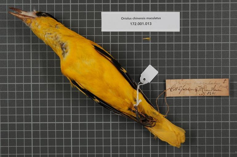 | Keywords: Naturalis Biodiversity Center - RMNH.AVES.141397 2 - Oriolus chinensis maculatus Vieillot, 1817 - Oriolidae - bird skin specimen.jpeg artwork Dimensions artwork Document type Oriolidae Oriolus Individual count 1 Infraspecific epithet maculatus Infraspecific rank Institution Naturalis Kind of unit artwork Kind of unit specimen skin Life stage Indonesia West Sumatra Ajer Bangis Medium artwork Nomenclatural code Occurrence ID page Other fields Other versions artwork Permission license Naturalis donation CC-0 Publication location Scientific name Oriolus chinensis maculatus Vieillot 1817 Scientific name authorship Vieillot 1817 male Source url http //bioportal naturalis nl Specific epithet chinensis State or province West Sumatra Subject keywords artwork Subject keywords publication Title artwork Title publication Type status Uploaded with GWToolset Naturalis_Biodiversity_Center_-_RMNH AVES 141397_2_-_Oriolus_chinensis_maculatus_Vieillot _1817_-_Oriolidae_-_bird_skin_specimen http //medialib naturalis nl/file/id/RMNH AVES 141397_2/format/large Media donated by Naturalis Biodiversity Center Songbird specimens at Naturalis Biodiversity Center Oriolus chinensis Oriolus |