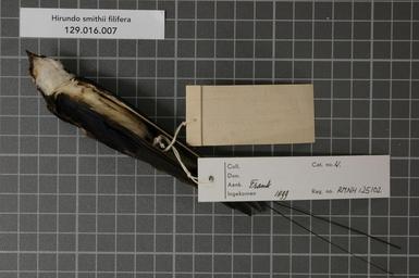 | Keywords: Naturalis Biodiversity Center - RMNH.AVES.125102 2 - Hirundo smithii filifera Stephens, 1825 - Hirundinidae - bird skin specimen.jpeg artwork Dimensions artwork Document type Hirundinidae Hirundo Individual count 1 Infraspecific epithet filifera Infraspecific rank Institution Naturalis Kind of unit artwork Kind of unit specimen skin Life stage India Nilghiris Coonoor Medium artwork Nomenclatural code Sex remark male Occurrence ID page Other fields Other versions artwork Permission license Naturalis donation CC-0 Publication location Scientific name Hirundo smithii filifera Stephens 1825 Scientific name authorship Stephens 1825 male Source url http //bioportal naturalis nl Specific epithet smithii State or province Nilghiris Subject keywords artwork Subject keywords publication Title artwork Title publication Type status Uploaded with GWToolset Naturalis_Biodiversity_Center_-_RMNH AVES 125102_2_-_Hirundo_smithii_filifera_Stephens _1825_-_Hirundinidae_-_bird_skin_specimen http //medialib naturalis nl/file/id/RMNH AVES 125102_2/format/large Media donated by Naturalis Biodiversity Center Songbird specimens at Naturalis Biodiversity Center Hirundo smithii museum specimens |