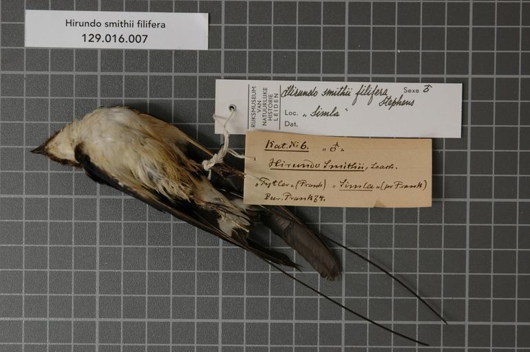 | Keywords: Naturalis Biodiversity Center - RMNH.AVES.125101 1 - Hirundo smithii filifera Stephens, 1825 - Hirundinidae - bird skin specimen.jpeg artwork Dimensions artwork Document type Hirundinidae Hirundo Individual count 1 Infraspecific epithet filifera Infraspecific rank Institution Naturalis Kind of unit artwork Kind of unit specimen skin Life stage Simla Medium artwork Nomenclatural code Locality remark Simla Frank Sex remark male Occurrence ID page Other fields Other versions artwork Permission license Naturalis donation CC-0 Publication location Scientific name Hirundo smithii filifera Stephens 1825 Scientific name authorship Stephens 1825 male Source url http //bioportal naturalis nl Specific epithet smithii State or province Subject keywords artwork Subject keywords publication Title artwork Title publication Type status Uploaded with GWToolset Naturalis_Biodiversity_Center_-_RMNH AVES 125101_1_-_Hirundo_smithii_filifera_Stephens _1825_-_Hirundinidae_-_bird_skin_specimen http //medialib naturalis nl/file/id/RMNH AVES 125101_1/format/large Media donated by Naturalis Biodiversity Center Songbird specimens at Naturalis Biodiversity Center Hirundo smithii museum specimens |