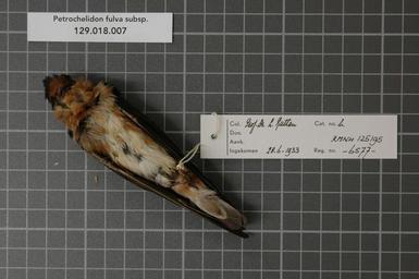 | Keywords: Naturalis Biodiversity Center - RMNH.AVES.125195 2 - Petrochelidon fulva subsp. - Hirundinidae - bird skin specimen.jpeg artwork Dimensions artwork Document type Hirundinidae Petrochelidon Individual count 1 Infraspecific epithet subsp Infraspecific rank Institution Naturalis Kind of unit artwork Kind of unit specimen skin Life stage Cuba San Diego de los Banos Medium artwork Nomenclatural code Occurrence ID page Other fields Other versions artwork Permission license Naturalis donation CC-0 Publication location Scientific name Petrochelidon fulva subsp Scientific name authorship Source url http //bioportal naturalis nl Specific epithet fulva State or province Subject keywords artwork Subject keywords publication Title artwork Title publication Type status Uploaded with GWToolset Naturalis_Biodiversity_Center_-_RMNH AVES 125195_2_-_Petrochelidon_fulva_subsp _-_Hirundinidae_-_bird_skin_specimen http //medialib naturalis nl/file/id/RMNH AVES 125195_2/format/large Media donated by Naturalis Biodiversity Center Songbird specimens at Naturalis Biodiversity Center Petrochelidon fulva museum specimens |