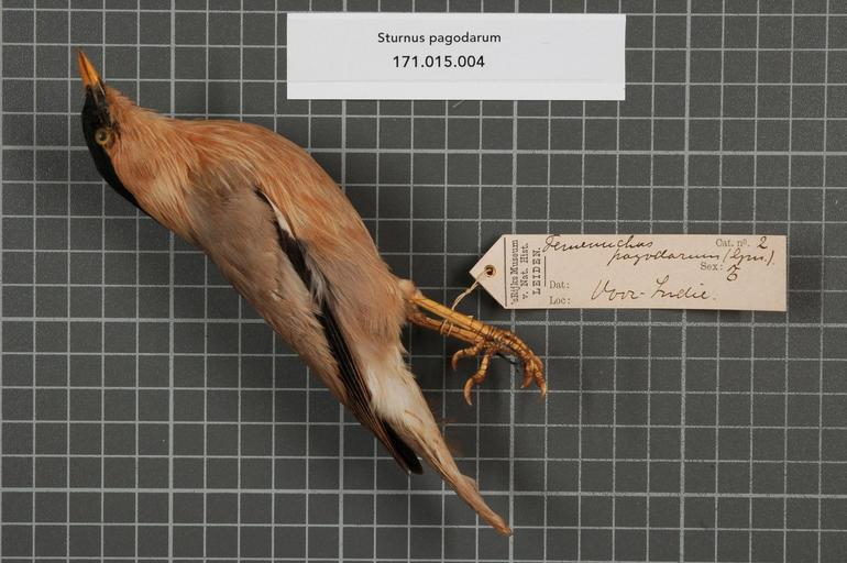 | Keywords: Naturalis Biodiversity Center - RMNH.AVES.144318 1 - Sturnus pagodarum (J.F. Gmelin, 1789) - Sturnidae - bird skin specimen.jpeg artwork Dimensions artwork Document type Sturnidae Sturnus Individual count 1 Infraspecific epithet Infraspecific rank Institution Naturalis Kind of unit artwork Kind of unit specimen skin Life stage Voor-Indie Medium artwork Nomenclatural code Occurrence ID page Other fields Other versions artwork Permission license Naturalis donation CC-0 Publication location Scientific name Sturnus pagodarum J F Gmelin 1789 Scientific name authorship J F Gmelin 1789 male Source url http //bioportal naturalis nl Specific epithet pagodarum State or province Voor-Indie Subject keywords artwork Subject keywords publication Title artwork Title publication Type status Uploaded with GWToolset Naturalis_Biodiversity_Center_-_RMNH AVES 144318_1_-_Sturnus_pagodarum_ J F _Gmelin _1789 _-_Sturnidae_-_bird_skin_specimen http //medialib naturalis nl/file/id/RMNH AVES 144318_1/format/large Media donated by Naturalis Biodiversity Center Songbird specimens at Naturalis Biodiversity Center Sturnia pagodarum |