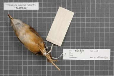 Keywords: Naturalis Biodiversity Center - RMNH.AVES.147072 2 - Trichastoma sepiarium rufiventre (Salvadori, 1874) - Timaliidae - bird skin specimen.jpeg artwork Dimensions artwork Document type Timaliidae Trichastoma Individual count 1 Infraspecific epithet rufiventre Infraspecific rank Institution Naturalis Kind of unit artwork Kind of unit specimen skin Life stage Indonesia C Borneo Liang Kubung Medium artwork Nomenclatural code ADDITIONAL FAMILY INFO zu 'male' No 9 Sex remark On original label female Occurrence ID page Other fields Other versions artwork Permission license Naturalis donation CC-0 Publication location Scientific name Trichastoma sepiarium rufiventre Salvadori 1874 Scientific name authorship Salvadori 1874 female Source url http //bioportal naturalis nl Specific epithet sepiarium State or province C Borneo Subject keywords artwork Subject keywords publication Title artwork Title publication Type status Uploaded with GWToolset Naturalis_Biodiversity_Center_-_RMNH AVES 147072_2_-_Trichastoma_sepiarium_rufiventre_ Salvadori _1874 _-_Timaliidae_-_bird_skin_specimen http //medialib naturalis nl/file/id/RMNH AVES 147072_2/format/large Media donated by Naturalis Biodiversity Center Songbird specimens at Naturalis Biodiversity Center Trichastoma Trichastoma sepiarium |