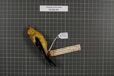 Keywords: Naturalis Biodiversity Center - RMNH.AVES.154021 1 - Carduelis tristis tristis (Linnaeus, 1758) - Fringillidae - bird skin specimen.jpeg artwork Dimensions artwork Document type Fringillidae Carduelis Individual count 1 Infraspecific epithet tristis Infraspecific rank Institution Naturalis Kind of unit artwork Kind of unit specimen skin Life stage Virginia Fairfax Co Langley Medium artwork Nomenclatural code Occurrence ID page Other fields Other versions artwork Permission license Naturalis donation CC-0 Publication location Scientific name Carduelis tristis tristis Linnaeus 1758 Scientific name authorship Linnaeus 1758 male Source url http //bioportal naturalis nl Specific epithet tristis State or province Virginia Fairfax Co Subject keywords artwork Subject keywords publication Title artwork Title publication Type status Uploaded with GWToolset Naturalis_Biodiversity_Center_-_RMNH AVES 154021_1_-_Carduelis_tristis_tristis_ Linnaeus _1758 _-_Fringillidae_-_bird_skin_specimen http //medialib naturalis nl/file/id/RMNH AVES 154021_1/format/large Media donated by Naturalis Biodiversity Center Songbird specimens at Naturalis Biodiversity Center Spinus tristis Carduelis |