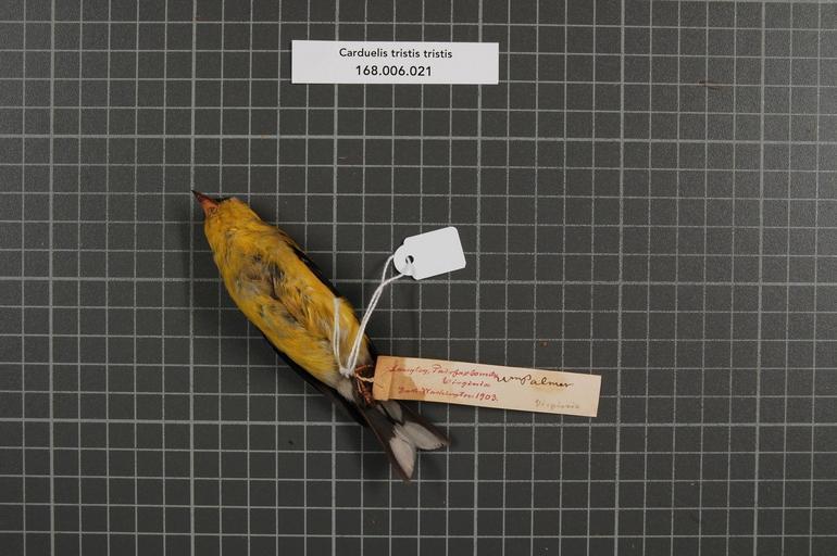Keywords: Naturalis Biodiversity Center - RMNH.AVES.154021 2 - Carduelis tristis tristis (Linnaeus, 1758) - Fringillidae - bird skin specimen.jpeg artwork Dimensions artwork Document type Fringillidae Carduelis Individual count 1 Infraspecific epithet tristis Infraspecific rank Institution Naturalis Kind of unit artwork Kind of unit specimen skin Life stage Virginia Fairfax Co Langley Medium artwork Nomenclatural code Occurrence ID page Other fields Other versions artwork Permission license Naturalis donation CC-0 Publication location Scientific name Carduelis tristis tristis Linnaeus 1758 Scientific name authorship Linnaeus 1758 male Source url http //bioportal naturalis nl Specific epithet tristis State or province Virginia Fairfax Co Subject keywords artwork Subject keywords publication Title artwork Title publication Type status Uploaded with GWToolset Naturalis_Biodiversity_Center_-_RMNH AVES 154021_2_-_Carduelis_tristis_tristis_ Linnaeus _1758 _-_Fringillidae_-_bird_skin_specimen http //medialib naturalis nl/file/id/RMNH AVES 154021_2/format/large Media donated by Naturalis Biodiversity Center Songbird specimens at Naturalis Biodiversity Center Spinus tristis Carduelis |