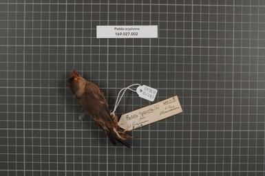 | Keywords: Naturalis Biodiversity Center - RMNH.AVES.161291 1 - Padda oryzivora (Linnaeus, 1758) - Estrildidae - bird skin specimen.jpeg artwork Dimensions artwork Document type Estrildidae Padda Individual count 1 Infraspecific epithet Infraspecific rank Institution Naturalis Kind of unit artwork Kind of unit specimen skin Life stage juvenile Wonosalam Medium artwork Nomenclatural code Occurrence ID page Other fields Other versions artwork Permission license Naturalis donation CC-0 Publication location Scientific name Padda oryzivora Linnaeus 1758 Scientific name authorship Linnaeus 1758 Source url http //bioportal naturalis nl Specific epithet oryzivora State or province Subject keywords artwork Subject keywords publication Title artwork Title publication Type status Uploaded with GWToolset Naturalis_Biodiversity_Center_-_RMNH AVES 161291_1_-_Padda_oryzivora_ Linnaeus _1758 _-_Estrildidae_-_bird_skin_specimen http //medialib naturalis nl/file/id/RMNH AVES 161291_1/format/large Media donated by Naturalis Biodiversity Center Songbird specimens at Naturalis Biodiversity Center Lonchura oryzivora Lonchura |
