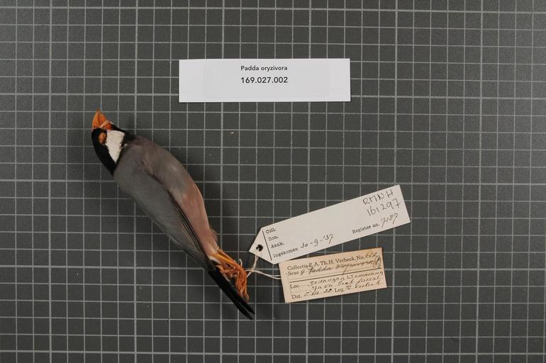 | Keywords: Naturalis Biodiversity Center - RMNH.AVES.161297 1 - Padda oryzivora (Linnaeus, 1758) - Estrildidae - bird skin specimen.jpeg artwork Dimensions artwork Document type Estrildidae Padda Individual count 1 Infraspecific epithet Infraspecific rank Institution Naturalis Kind of unit artwork Kind of unit specimen skin Life stage Indonesia Java Semarang Gedangan teak forest Medium artwork Nomenclatural code Occurrence ID page Other fields Other versions artwork Permission license Naturalis donation CC-0 Publication location Scientific name Padda oryzivora Linnaeus 1758 Scientific name authorship Linnaeus 1758 female Source url http //bioportal naturalis nl Specific epithet oryzivora State or province Java Semarang Subject keywords artwork Subject keywords publication Title artwork Title publication Type status Uploaded with GWToolset Naturalis_Biodiversity_Center_-_RMNH AVES 161297_1_-_Padda_oryzivora_ Linnaeus _1758 _-_Estrildidae_-_bird_skin_specimen http //medialib naturalis nl/file/id/RMNH AVES 161297_1/format/large Media donated by Naturalis Biodiversity Center Songbird specimens at Naturalis Biodiversity Center Lonchura oryzivora Lonchura |