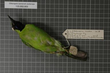 | Keywords: Naturalis Biodiversity Center - RMNH.AVES.127000 1 - Chloropsis sonnerati zosterops Vigors & Horsfield, 1830 - Irenidae - bird skin specimen.jpeg artwork Dimensions artwork Document type Irenidae Chloropsis Individual count 1 Infraspecific epithet zosterops Infraspecific rank Kind of unit artwork Kind of unit specimen skin Life stage Langkat Telaga Sait bij Pengkalan Brandan Medium artwork Nomenclatural code Locality remark On RMNH label Pengkalan Brandan Should probably be Pangkalanbrandan Occurrence ID Other fields Other versions artwork Permission license Naturalis donation CC-0 Publication location Scientific name Chloropsis sonnerati zosterops Vigors Horsfield 1830 Scientific name authorship Vigors Horsfield 1830 male Source url Specific epithet sonnerati State or province Langkat Subject keywords artwork Subject keywords publication Title artwork Title publication Type status Uploaded with GWToolset Naturalis_Biodiversity_Center_-_RMNH AVES 127000_1_-_Chloropsis_sonnerati_zosterops_Vigors_ _Horsfield _1830_-_Irenidae_-_bird_skin_specimen http //medialib naturalis nl/file/id/RMNH AVES 127000_1/format/large Media donated by Naturalis Biodiversity Center Songbird specimens at Naturalis Biodiversity Center Chloropsis sonnerati Chloropsis |