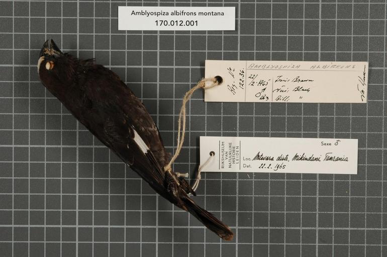 | Keywords: Naturalis Biodiversity Center - RMNH.AVES.36728 1 - Amblyospiza albifrons montana van Someren, 1921 - Ploceidae - bird skin specimen.jpeg artwork Dimensions artwork Document type Ploceidae Amblyospiza Individual count 1 Infraspecific epithet montana Infraspecific rank Institution Naturalis Kind of unit artwork Kind of unit specimen skin Life stage Tanzania Mtwara Distr Mikindani Medium artwork Nomenclatural code Occurrence ID page Other fields Other versions artwork Permission license Naturalis donation CC-0 Publication location Scientific name Amblyospiza albifrons montana van Someren 1921 Scientific name authorship van Someren 1921 male Source url http //bioportal naturalis nl Specific epithet albifrons State or province Mtwara Distr Subject keywords artwork Subject keywords publication Title artwork Title publication Type status Uploaded with GWToolset Naturalis_Biodiversity_Center_-_RMNH AVES 36728_1_-_Amblyospiza_albifrons_montana_van_Someren _1921_-_Ploceidae_-_bird_skin_specimen http //medialib naturalis nl/file/id/RMNH AVES 36728_1/format/large Media donated by Naturalis Biodiversity Center Songbird specimens at Naturalis Biodiversity Center Amblyospiza albifrons Amblyospiza |